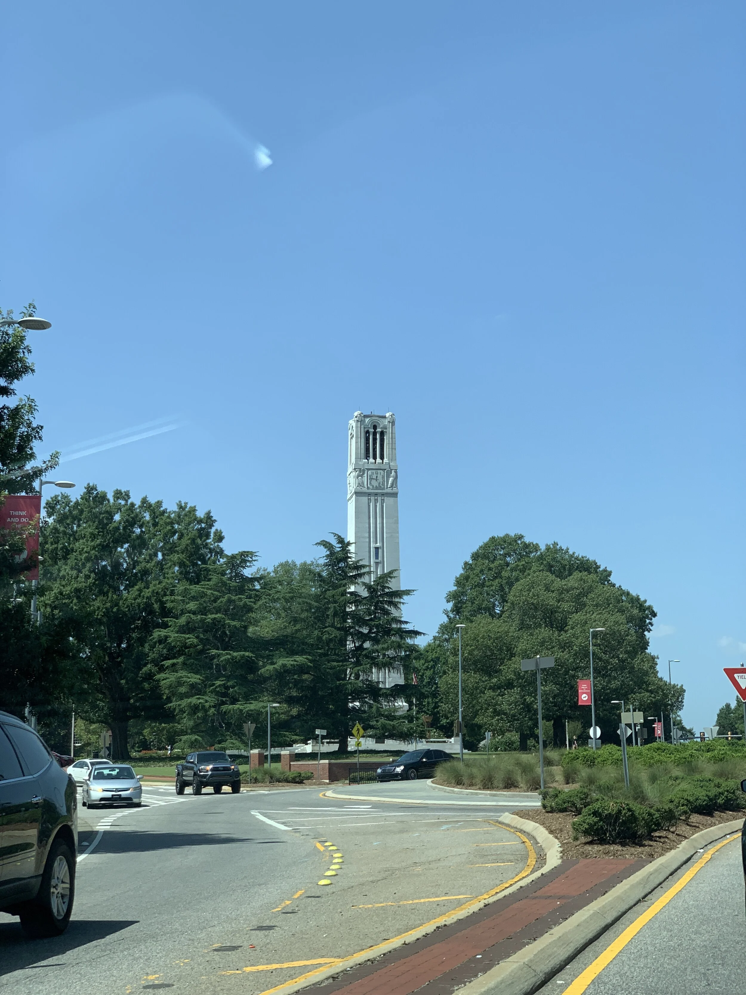 The Belltower isn’t nearly the tallest structure on campus— it’s shorter than D.H. Hill Library by ~39 ft, although it is ~27 ft taller than Hunt Library. If you’re a fan of obscure units of measurement, you may enjoy learning that the tower is 1.74e-1 furlongs, 3.5e10 nanometers (and by extension about 3.5e11 hydrogen atoms), 2.34e-10 AU (meaning it would take 4.27e8 Memorial Belltowers to reach the sun), and 20.6 smoots tall.